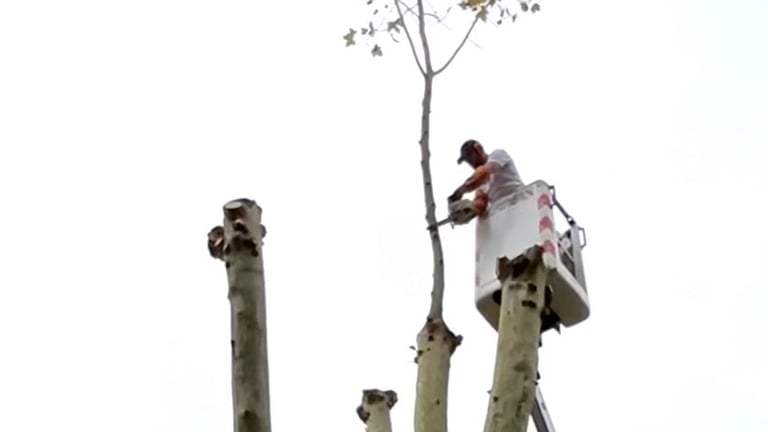 Intervention de Thomas Cambon pour la taille de 48 platanes à Monferrand-Saves (32)