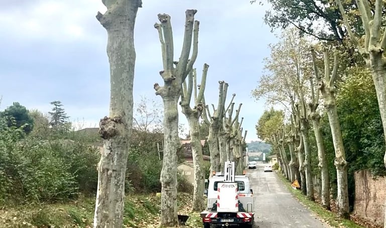 Élagage de 48 platanes à Monferrand-Saves : une intervention réussie par Thomas Cambon et Bois et Jardin. Thomas Cambon, expert en élagage, a récemment réalisé la taille de 48 platanes à Monferrand-Saves (32), en collaboration avec la société Bois et Jardin. Cette opération d'envergure a permis d'assurer la sécurité et l’embellissement des espaces verts communaux, tout en respectant la santé des arbres.